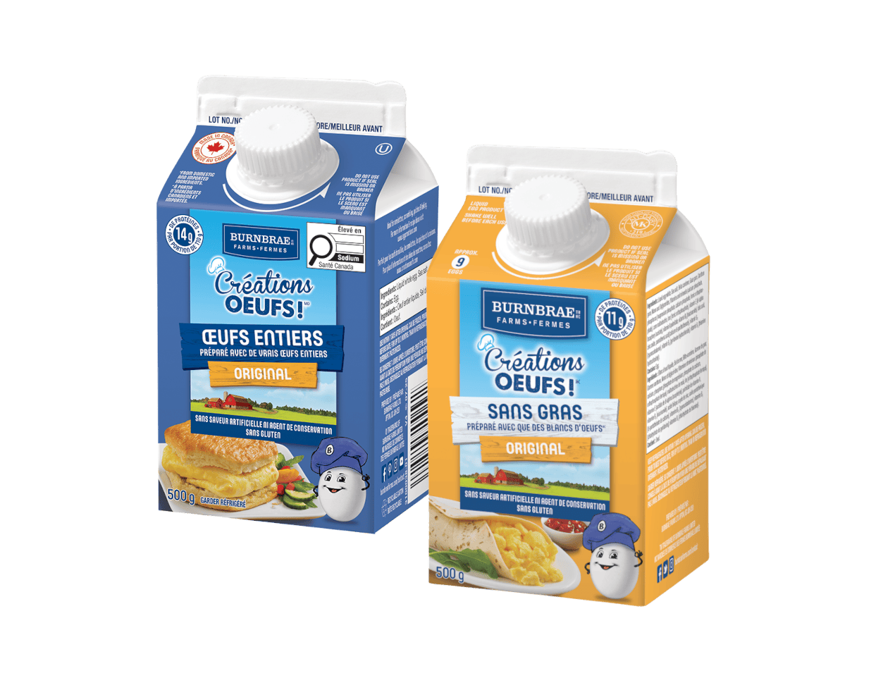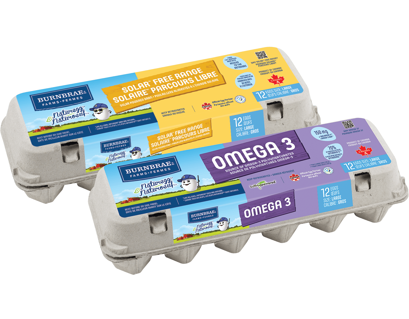 Les œufs sont riches en nutriments et constituent une source de vitamines et minéraux essentiels et, bien sûr, de protéines – 13 g dans une portion de 2 gros œufs! Grâce à nos pratiques d’élevage novatrices, nous produisons des œufs qui contiennent encore plus d’éléments nutritifs, comme les acides gras oméga-3 DHA et la lutéine, qui favorisent la santé cardiovasculaire.