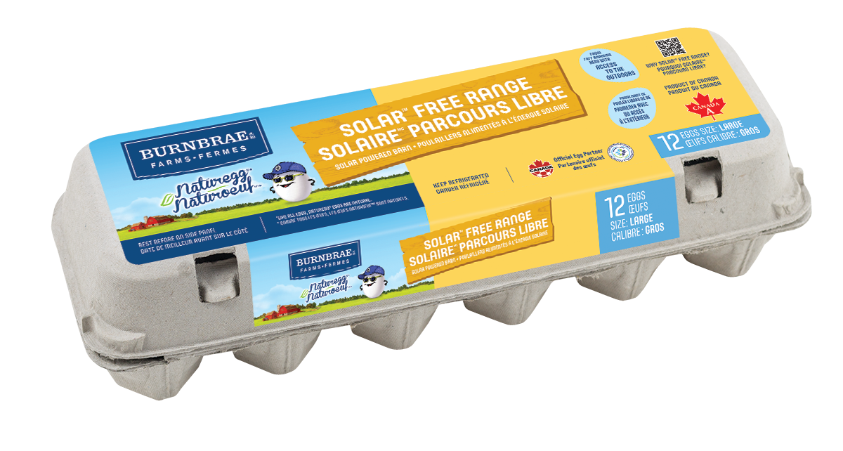 Les œufs Naturœuf Solaire Parcours libre sont produits par des poules élevées en parcours libre, c’est-à-dire qu’elles peuvent sortir tant que les conditions météorologiques et environnementales le permettent. Elles vivent dans des poulaillers à aire ouverte alimentés à l’énergie solaire et équipés de nids, de perchoirs et d’aires de bain de poussière. Puisqu'ils utilisent le soleil comme source d'énergie, ces poulaillers produisent des œufs dont l'efficacité énergétique est parmi les meilleures au Canada.
